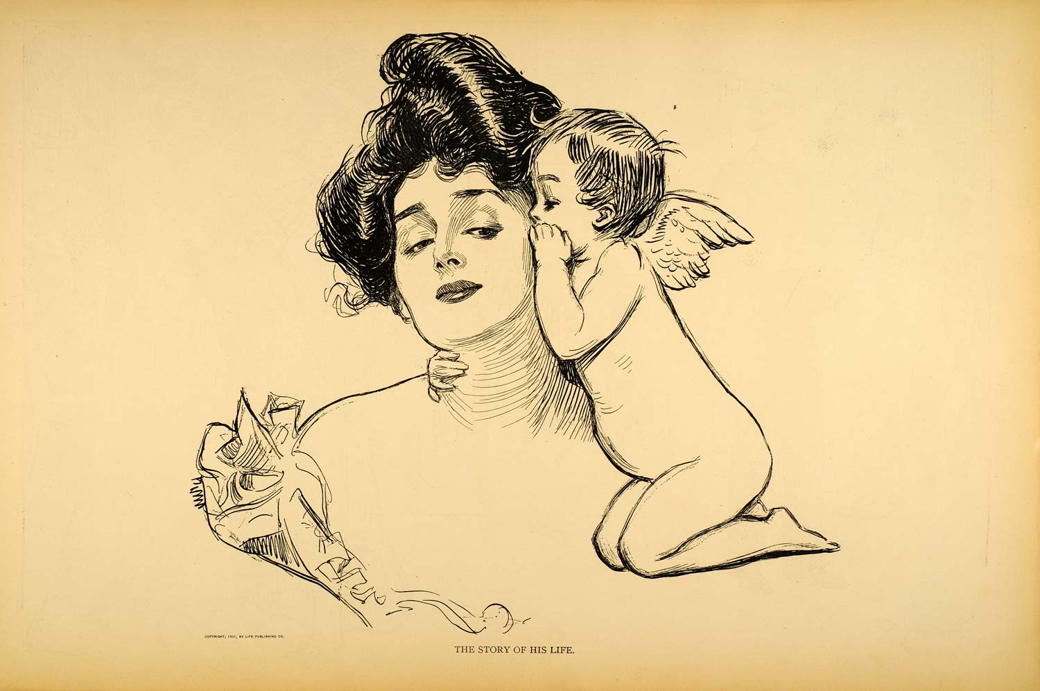 1906 Print Charles Dana Gibson Girl Cupid Cherub Love Romance Victorian Drawing