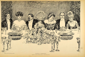 1906 Print Charles Dana Gibson Girl Dinner Victorian Society Lovers Satire Humor