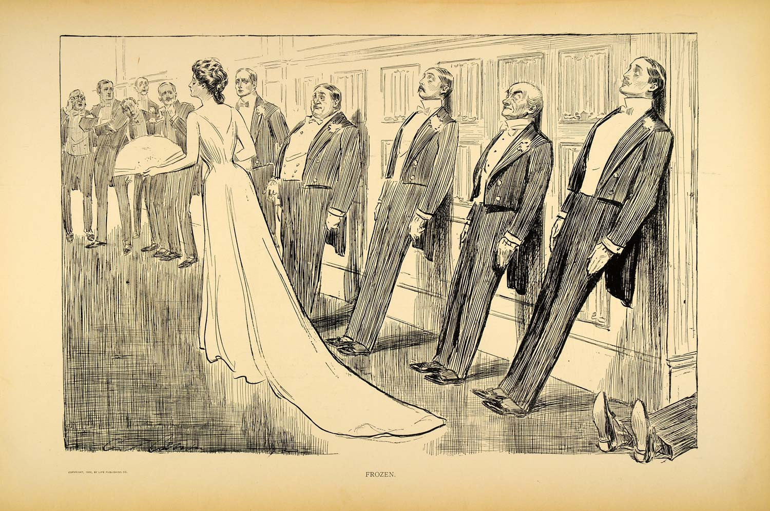 1906 Print Charles Dana Gibson Girl Frozen Victorian Gentlemen Satire Drawing
