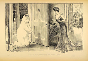 1906 Print Charles Dana Gibson Girl Snowman Winter Snow Victorian Drawing Art