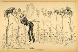 1906 Print Charles Dana Gibson Girls Flower Heads Old Man Butterfly Victorian