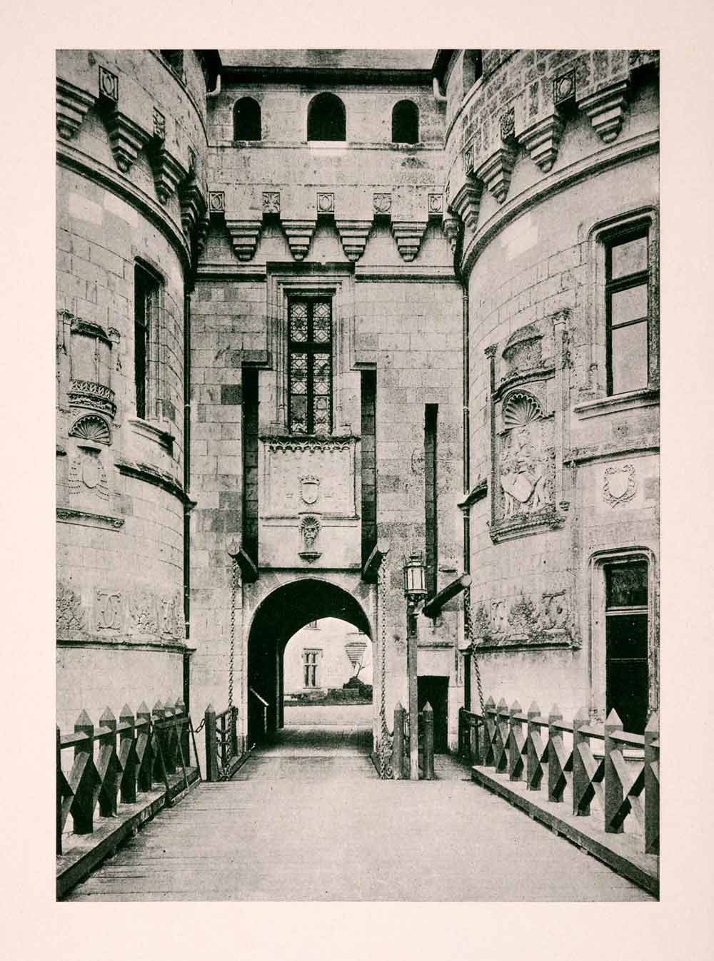 This is an original 1906 duotone halftone print of "Château of Chaumont: entrance."
