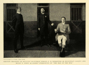 This is an original 1906 halftone print of Chester Beecroft as "Mounted Policeman O'Brien, C. N. Schaeffer as "Policeman Cassidy" and Henry E. Dixey as "Robert Worburton" in "The Man on the Box."