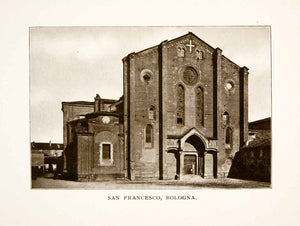 This is an original 1906 black and white halftone print of the San Francesco Basilica in Bologna, Italy.