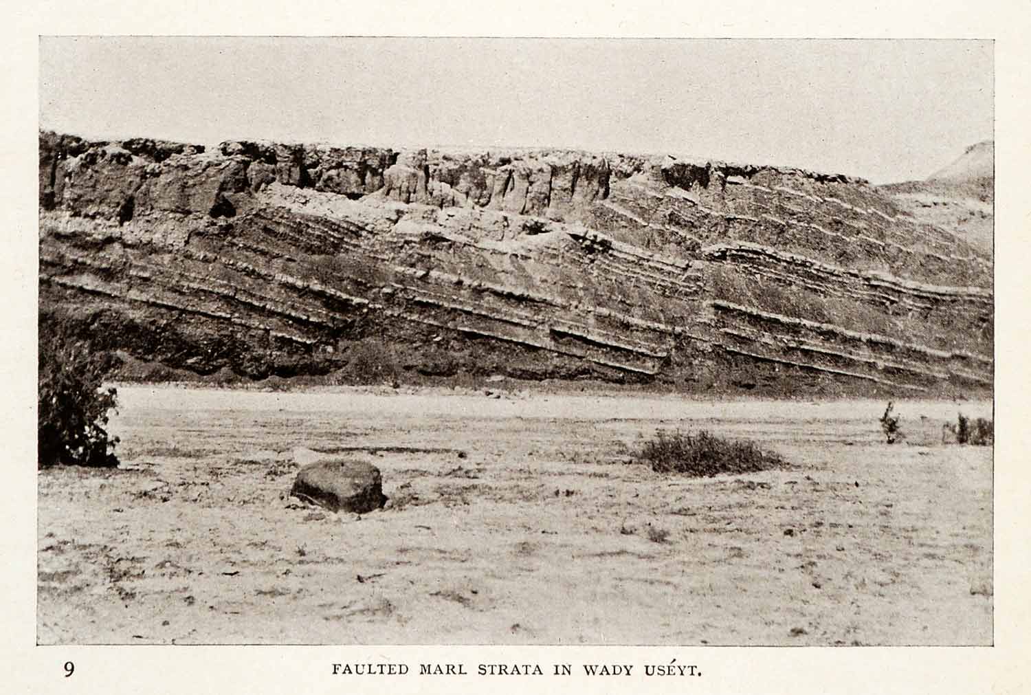 This is an original 1906 sepia halftone print of Faulted Marl Strata in Wady Useyt.