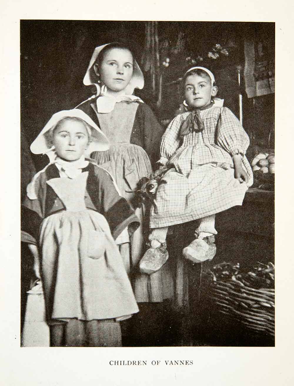 This is an original 1906 black and white halftone print of children of Vannes, France.
