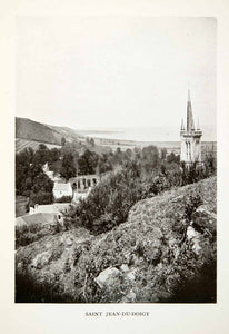 This is an original 1906 black and white halftone print of Saint Jean-Du-Doight form a hillside.