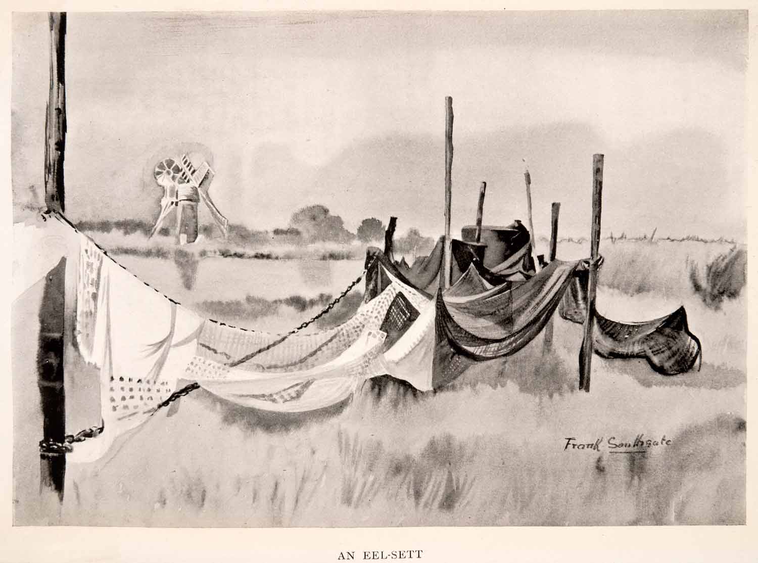 1906 Print Frank Southgate Eel Trap Hunting Fishing Windmill Marsh XGCA5