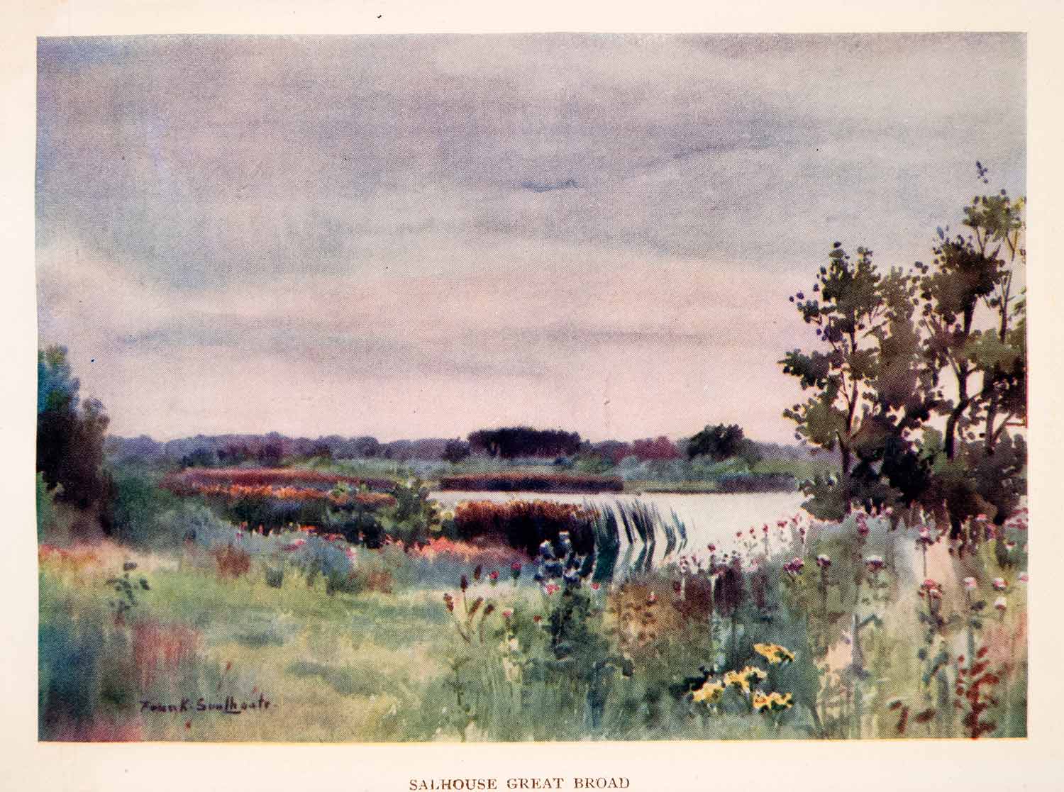 1906 Print Frank Southgate Salhouse Lake Marsh River Flowers Wetlands Art XGCA5