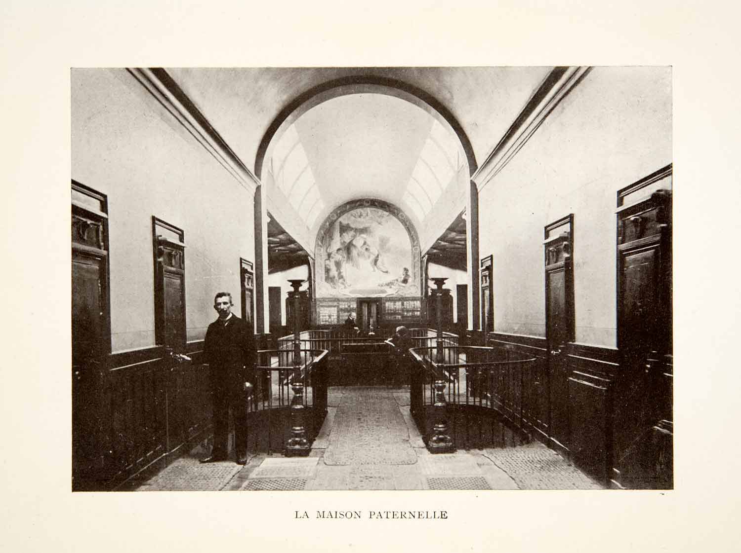 This is an original 1906 black and white halftone print of an interior view of La Maison Paternelle in France.