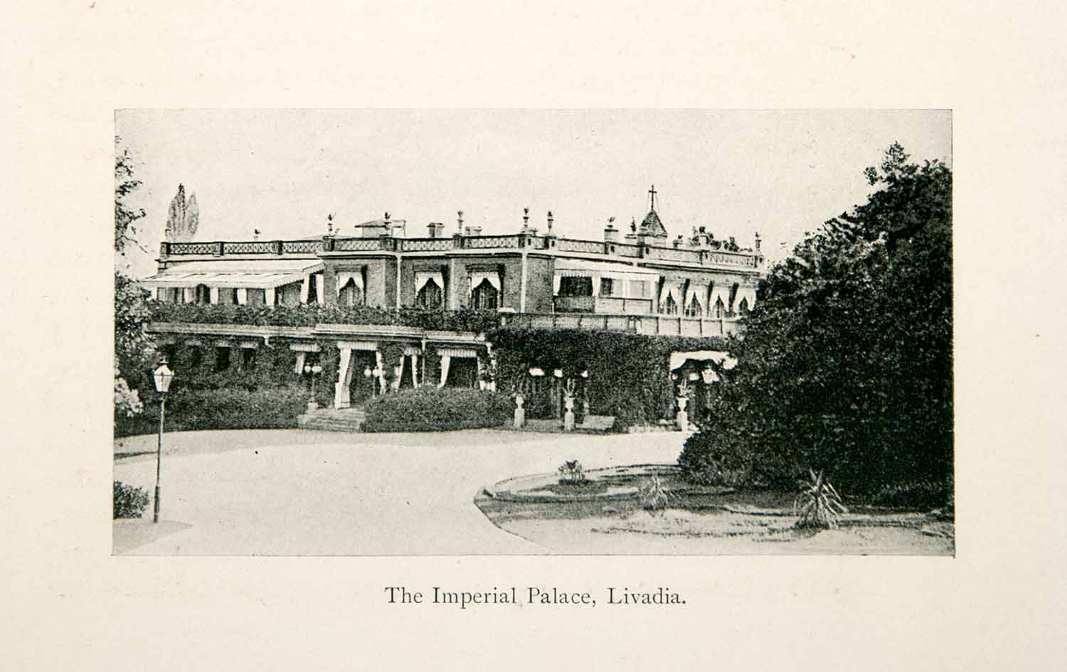 This is an original 1906 black and white halftone print of the Imperial Palace, in Livadia, Crimea, in Southern Ukraine. The Yalta conference was held here in 1945, and now it is a museum.
