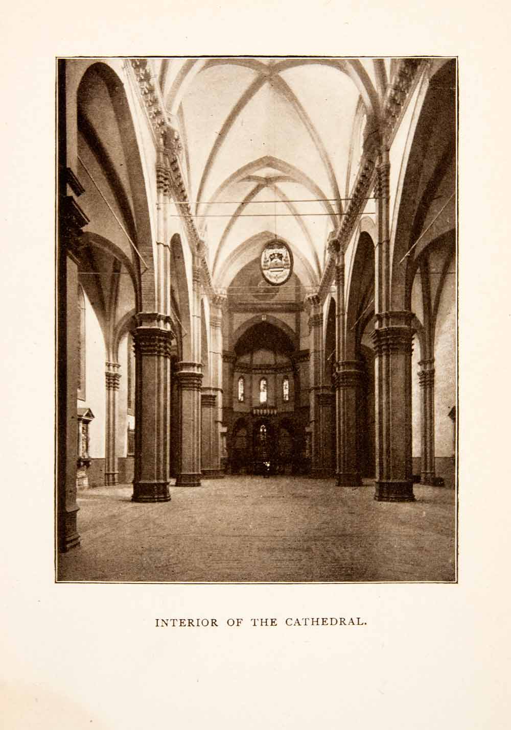 This is an original 1906 sepia halftone print of the interior of the Basilica di Santa Maria del Fiore in Florence, Italy.