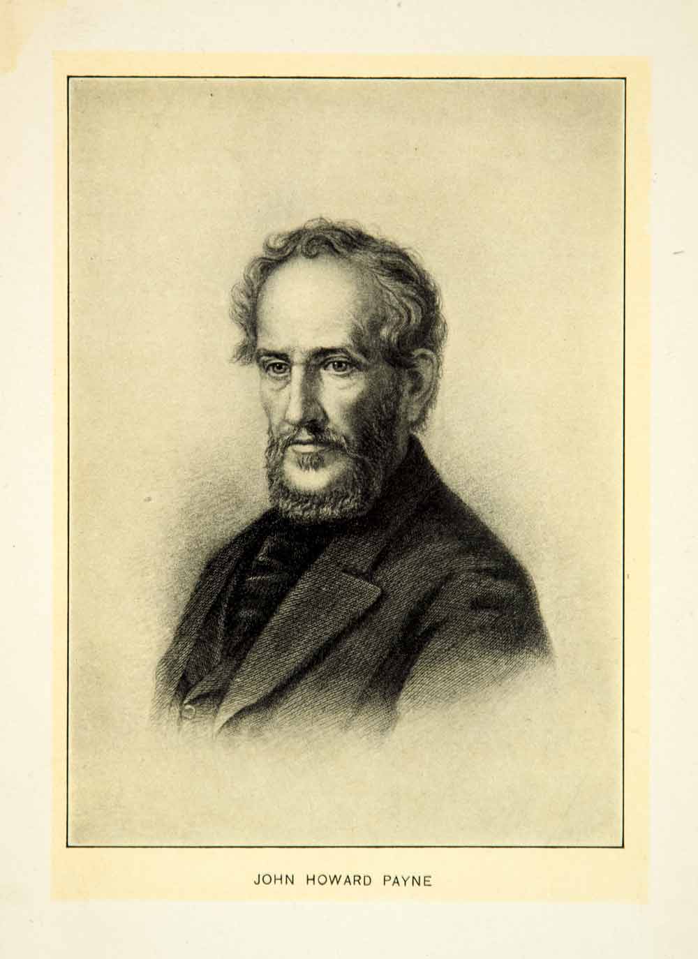 This is an original 1906 two-color halftone print portrait of John Howard Payne (1791-1852), the American actor, poet, playwright, and author. He is known as the author of the lyrics to the popular nostalgic song "Home, Sweet Home" in 1822.
