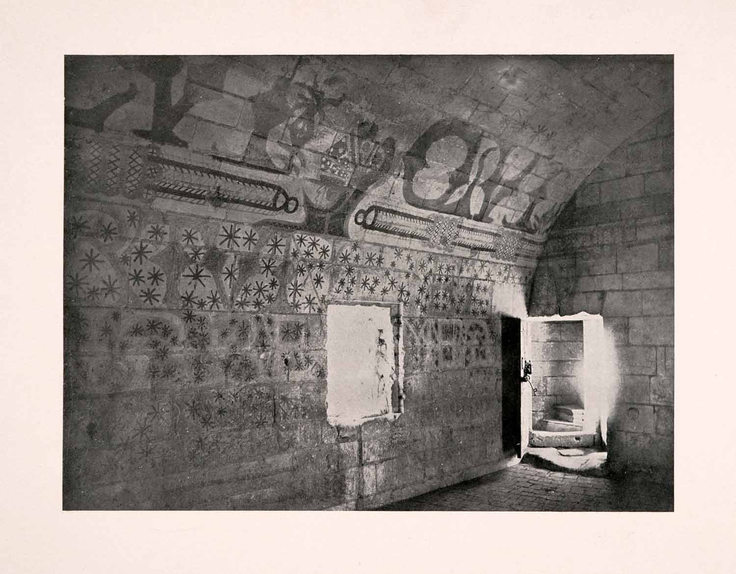This is an original 1906 halftone print of the underground dungeon for the Duke of Milan, Ludovico Sforza, after he was given over to the French in 1500 due to a hereditary royal discrepancy between Sforza and Louis XII of France. This underground medieval prison was located in Loches, France.