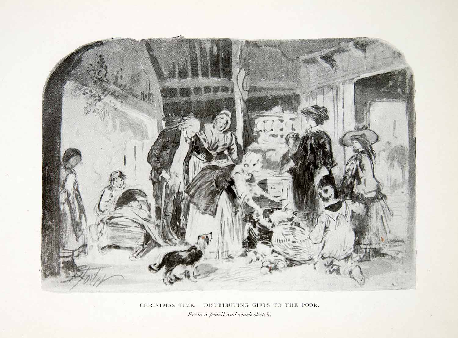1906 Print Myles Birket Foster England Gift Christmas Poor Poverty Charity XAT7