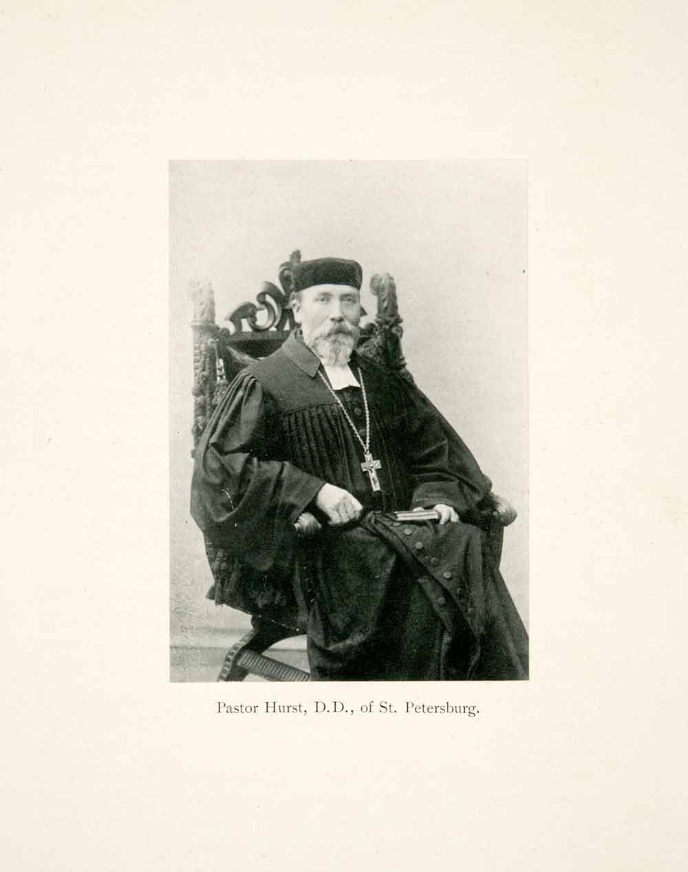 This is an original 1906 black and white halftone print portrait of Pastor Hurst, in St. Petersburg, Russia.