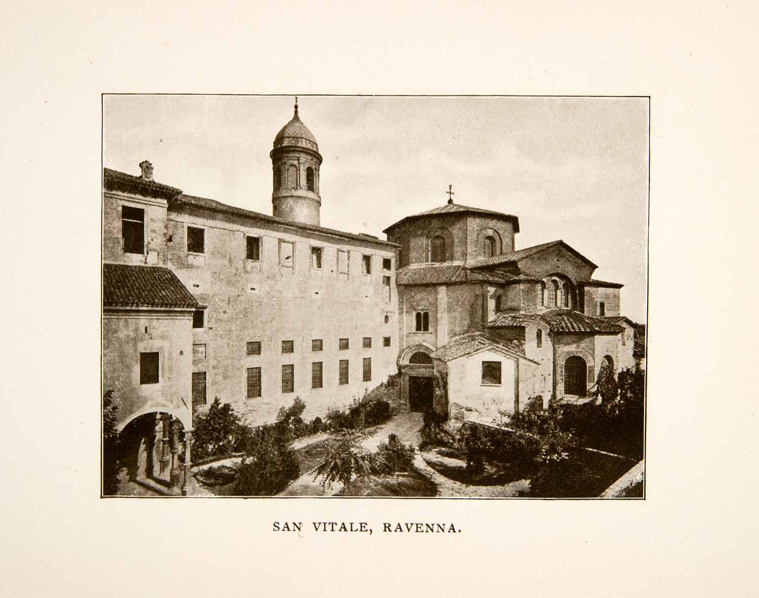 This is an original 1906 black and white halftone print of San Vitale in Ravenna, Italy.