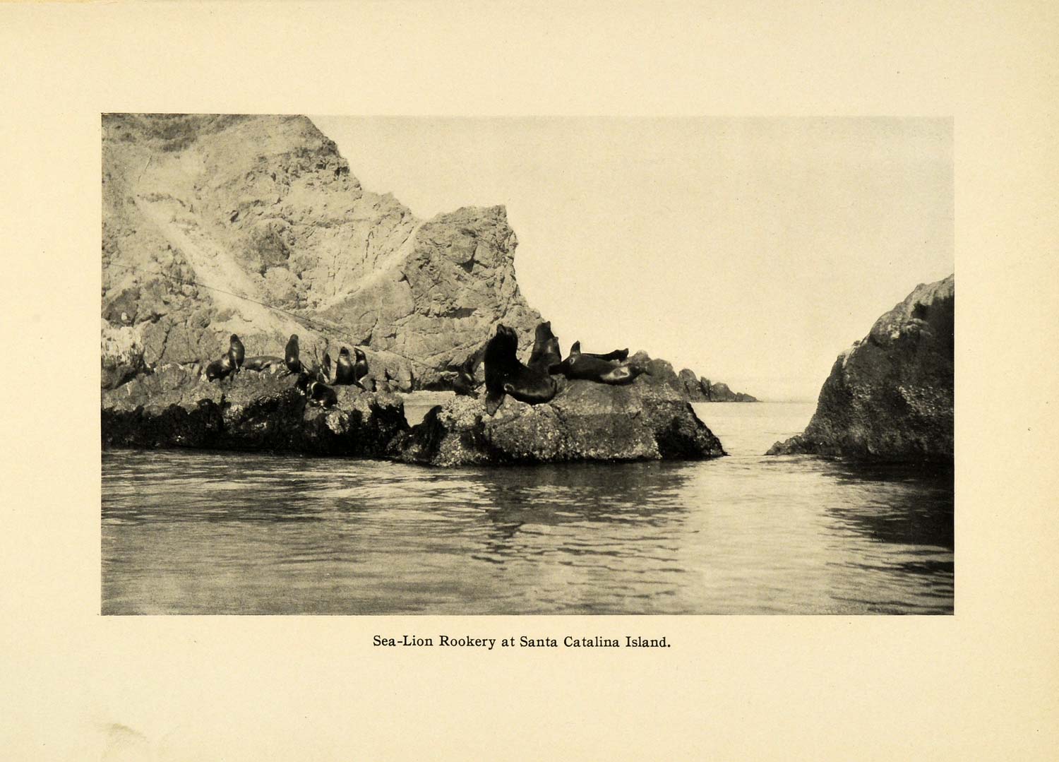 This is an original 1906 halftone print of a Sea Lion Rookery (or breeding ground) at Santa Catalina Island in California.