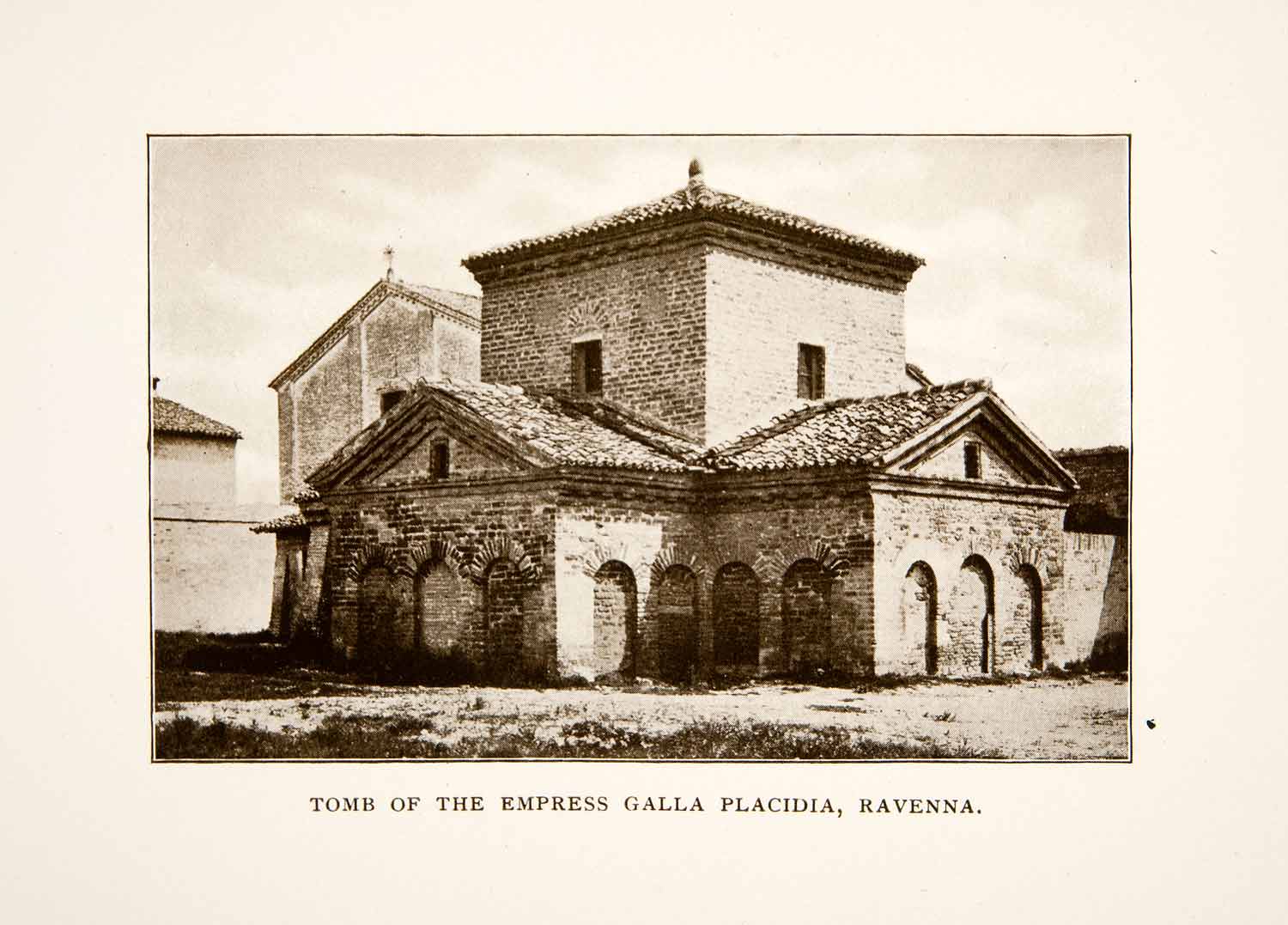 This is an original 1906 black and white halftone print of the tomb of the Empress Galla Placidia in Ravenna, Italy.