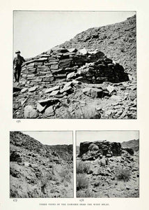 These are three original 1906 halftone prints of views of the Nawamis (tombs) near the Wady Solaf; Sinai, Egypt.