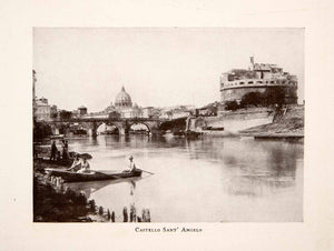 This is an original 1906 black and white halftone print of the Castello Sant'Angelo, or the Mausoleum of Hadrian located in Parco Adriano, in Rome, Italy. The cylindrical building is now a museum.