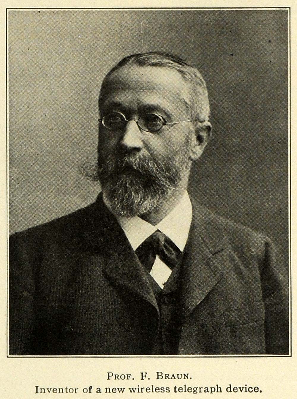 This is an original 1906 halftone print featuring an image of Professor F. Braun, an inventor of the wireless telegraph device.