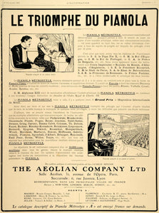 This is an original 1906 black and white French print ad for the Pianola Metrostyle from The Aeolian Company, Ltd., Salle Aeolian, 32 Avenue de l'Opera, Paris.