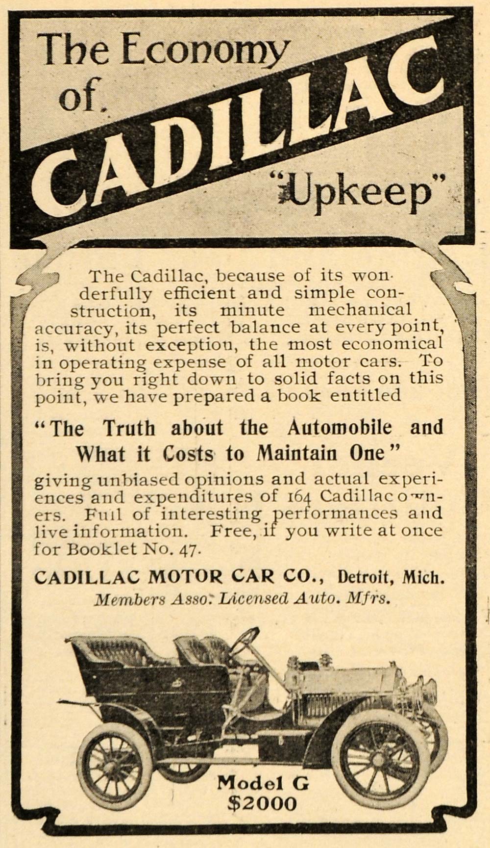 This is an original 1907 black and white print ad for the Cadillac Model G from Cadillac Motor Car Company located in Detroit, Michigan.