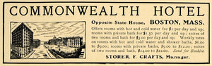 This is an original 1907 black and white print ad for the Commonwealth Hotel in Boston Massachusetts.