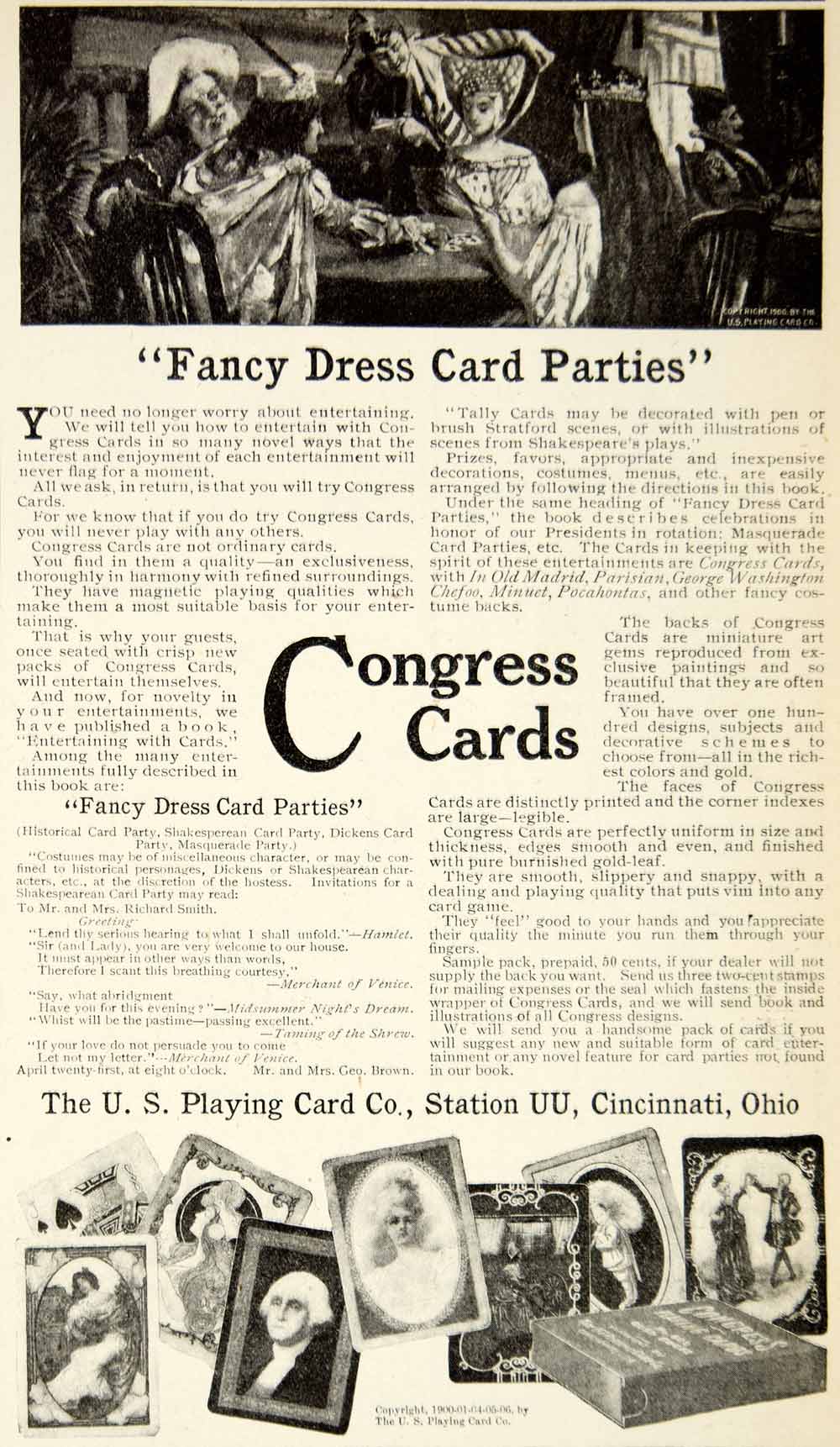 This is an original 1907 black and white print ad for Fancy Dress Card Parties from Congress Cards.