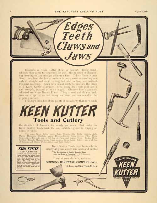 Keywords specific to this image: Vintage Tools, Antique Tools, Simmons Hardware Company, Tool Cabinets, Tool Illustrations, Carpentry, Carpenter, Workmanship Vintage Advertising
