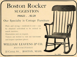 This is an original 1907 black and white print ad for William Leavens and Company's Boston Rocker.