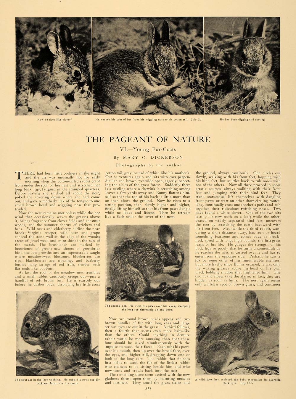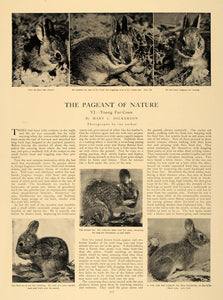 This is an original 1907 4 page (2 pages, double-sided) article by Mary C. Dickerson on the life of young animals, such as rabbits, mice, foxes and squirrels. Please see all images.