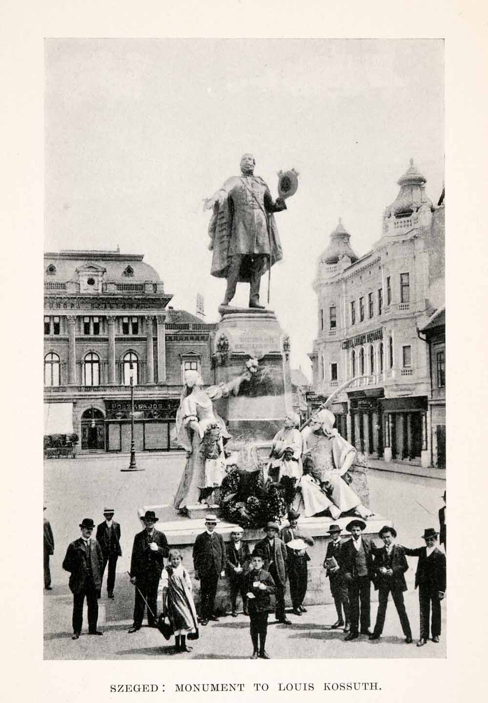 This is an original 1907 black and white halftone print of a sculptue of Louis Kossuth (1802-1894) who was a Hungarian revolutionary hero. He played a major role in the Hungarian revolution of 1848 and after Hungary was granted a separate government from Austria, he became finance minister.