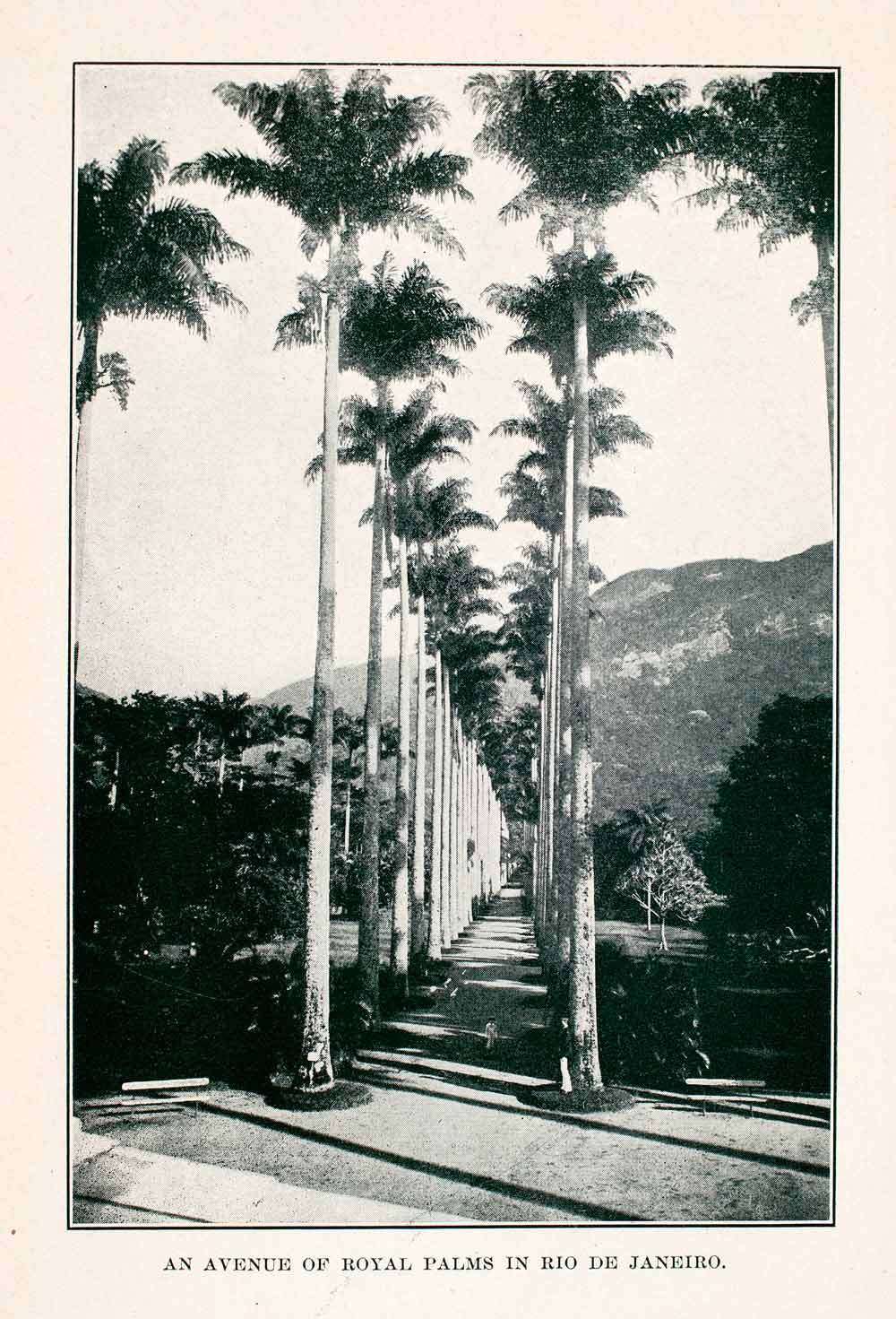 This is an original 1907 duotone halftone print of "An Avenue of Royal Palms in Rio de Janeiro," in the Jardim Botânico, or Botanical Garden, in the Zona Sul (South Zone) of Rio de Janeiro, Brazil.