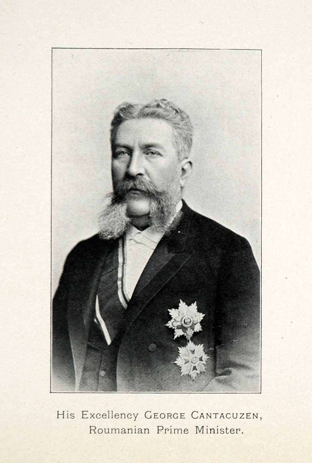This is an original 1907 black and white halftone print of a portrait of George Cantacuzen who is the Romanian Prime Minister.