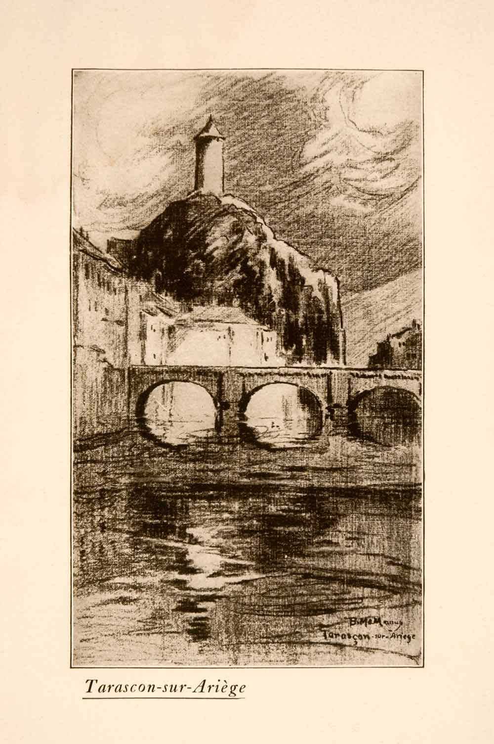 1907 Halftone Print Tarascon sur Ariege Castella France Landscape Bridge XGNA3