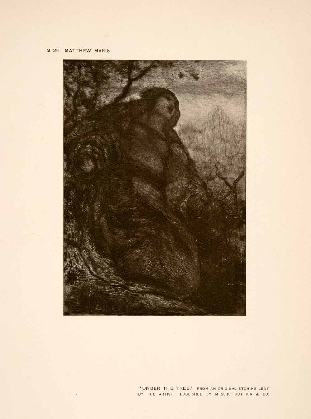 This is an original 1907 sepia halftone print of a statue "Under the Tree".