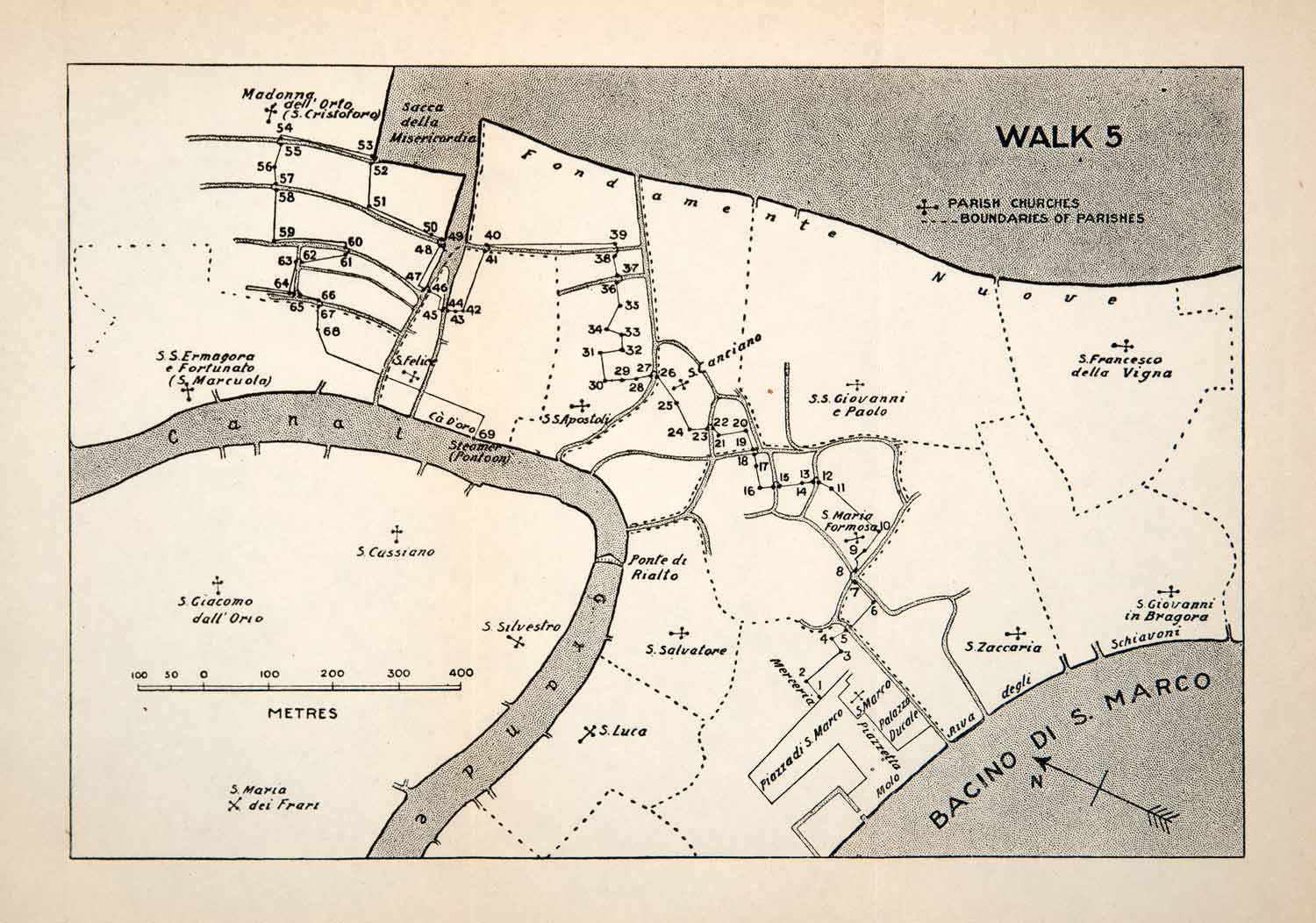 1907 Lithograph Map Walking Venice Italy Grand Canal Sacca Della XGVB3