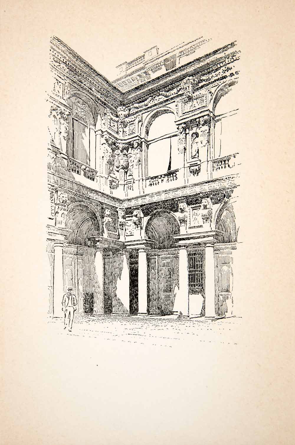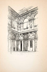 1907 Lithograph Palazzo Marino Courtyard Milan Italy Architecture Peixotto XGBB7