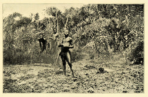 This is an original 1907 halftone print of Bamba warriors at the Hot Springs in the Congo of Africa.