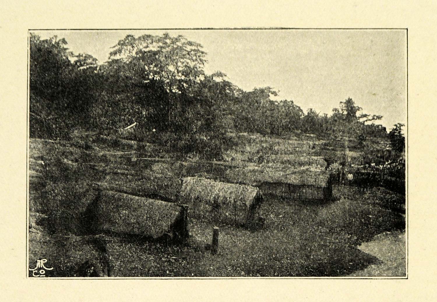 This is a tiny original 1907 halftone print of the homes of Cannibals in the Congo of Africa.