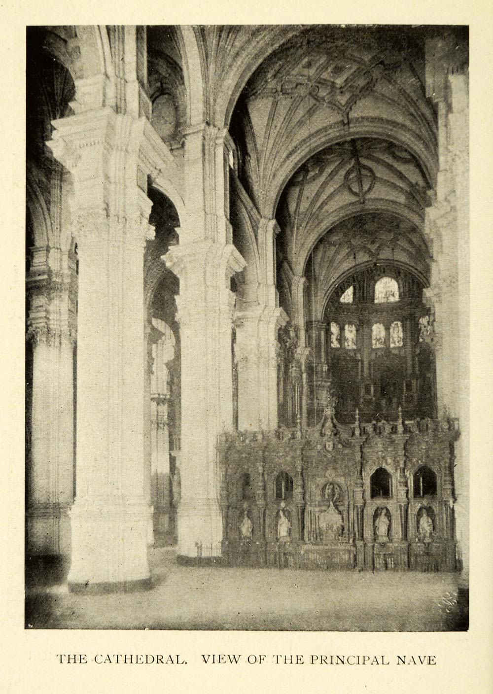 This is an original 1907 halftone print of a view of the Principal Nave in the Cathedral of the Cartuja Monastery in Granada, Spain.