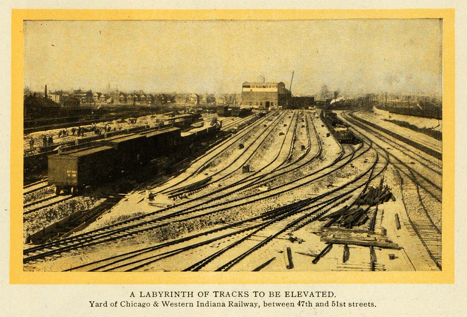 This is an original 1907 color print displaying the tracks to be elevated for the Chicago & Western Indiana Railway.