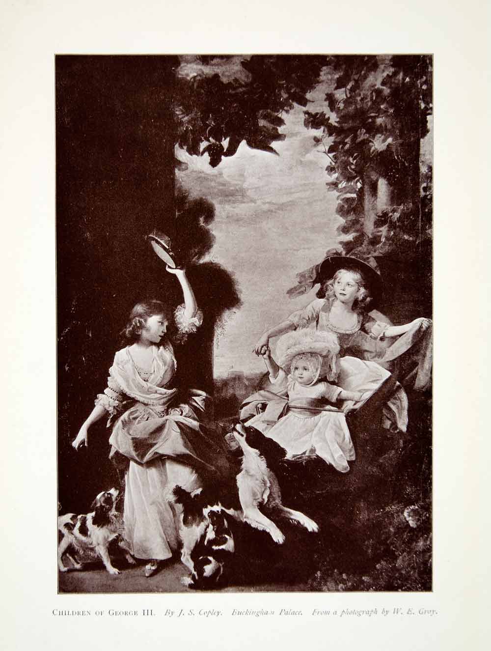 This is an original 1907 monochrome halftone print depicting a portrait of the children of King George the III by John Singleton Copley.
