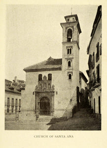 This is an original 1907 halftone print of the Church of Santa Ana in Granada, Spain.