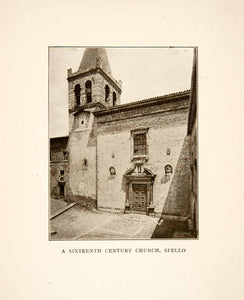 This is an original 1907 black and white halftone print of a 16th century church in Spello, Italy.