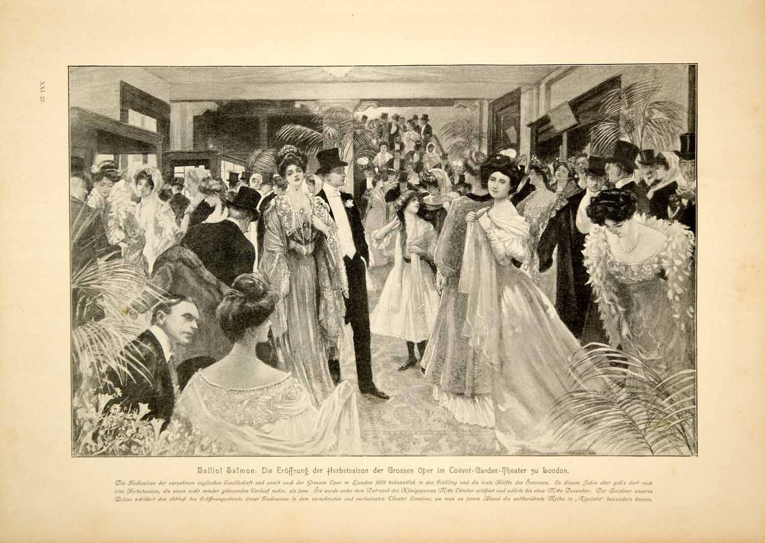 Die Eröffnung der Herbstsaison der Grossen Oper im Covent-Garden-Theater zu London, which depicts the fall season opening of the great opera at Covent Garden Theater in London.
