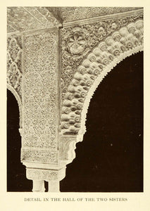 This is an original 1907 sepia halftone print of the Detail in the Hall of the Two Sisters in the Alhambra in Granada, Spain.
