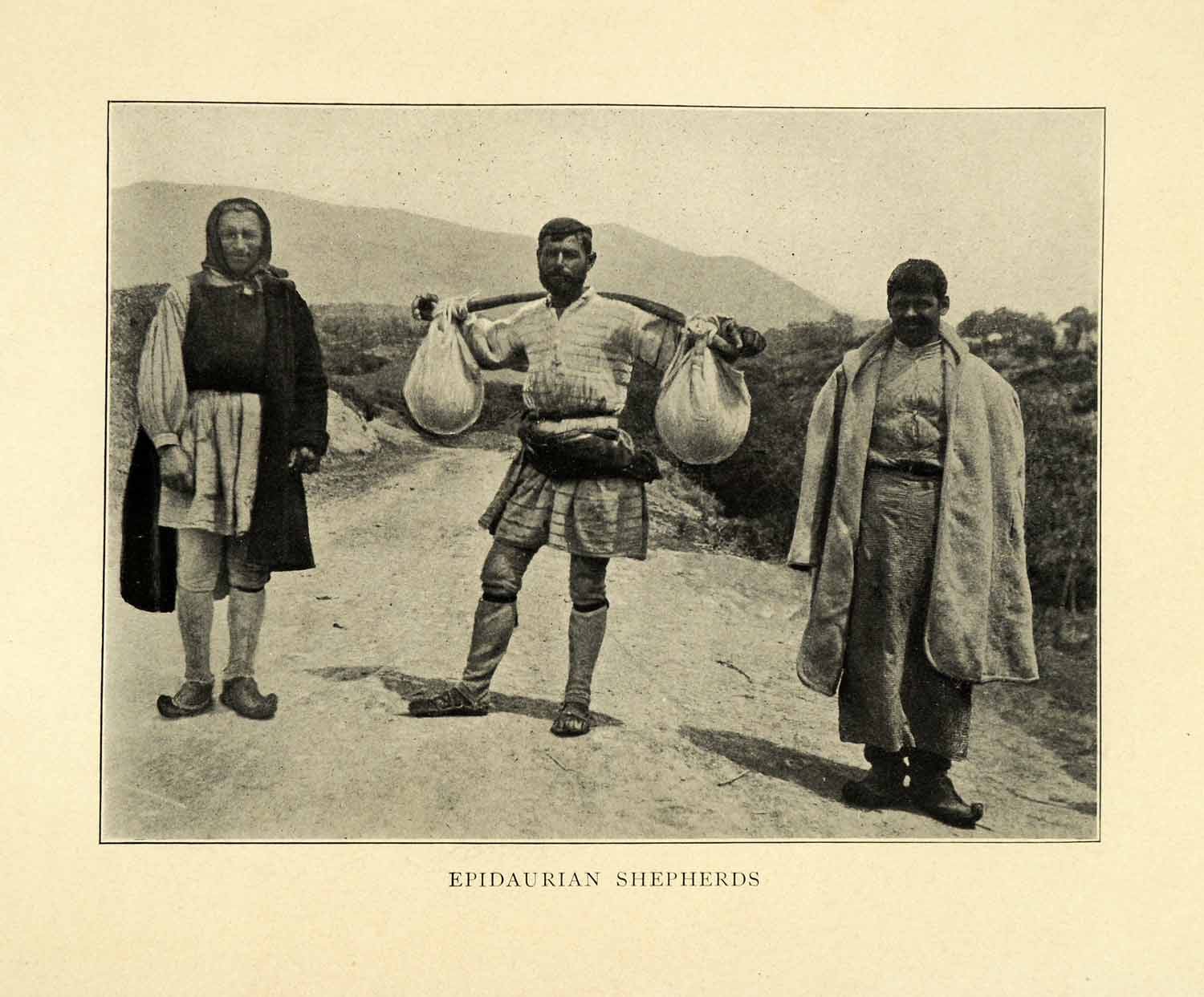 This is an original 1907 halftone print of shepherds of Edipaurus, Greece.